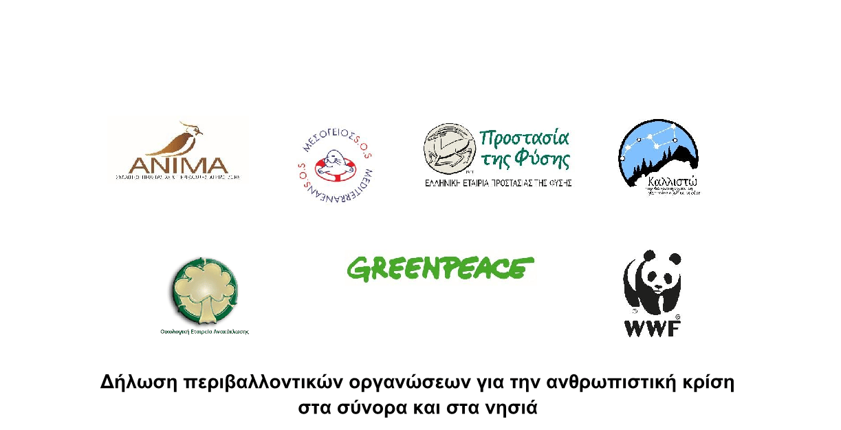 Οι περιβαλλοντικές οργανώσεις ΑΝΙΜΑ, ΑΡΧΕΛΩΝ - Σύλλογος για την Προστασία της Θαλάσσιας Χελώνας, ΕΛΛΗΝΙΚΗ ΕΤ...