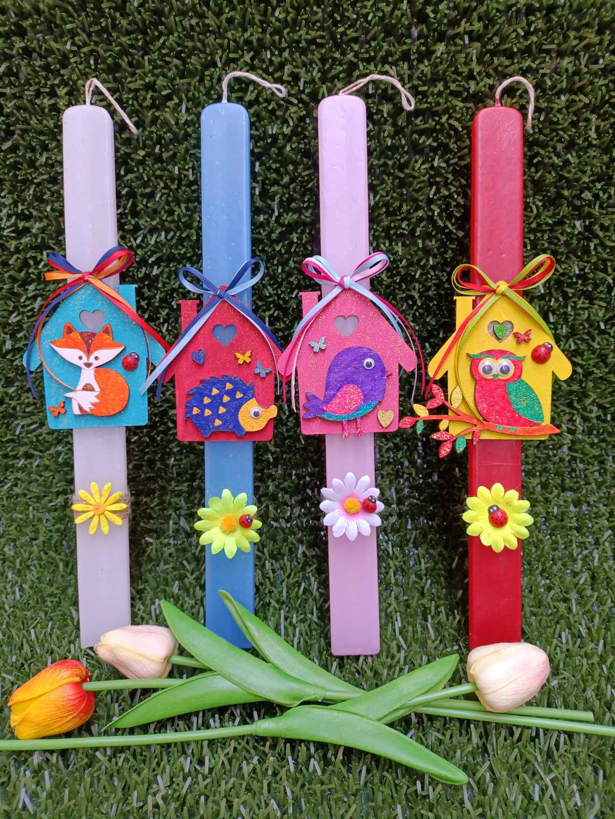 Handmade Easter candles – 35cm rectangle candle – little house