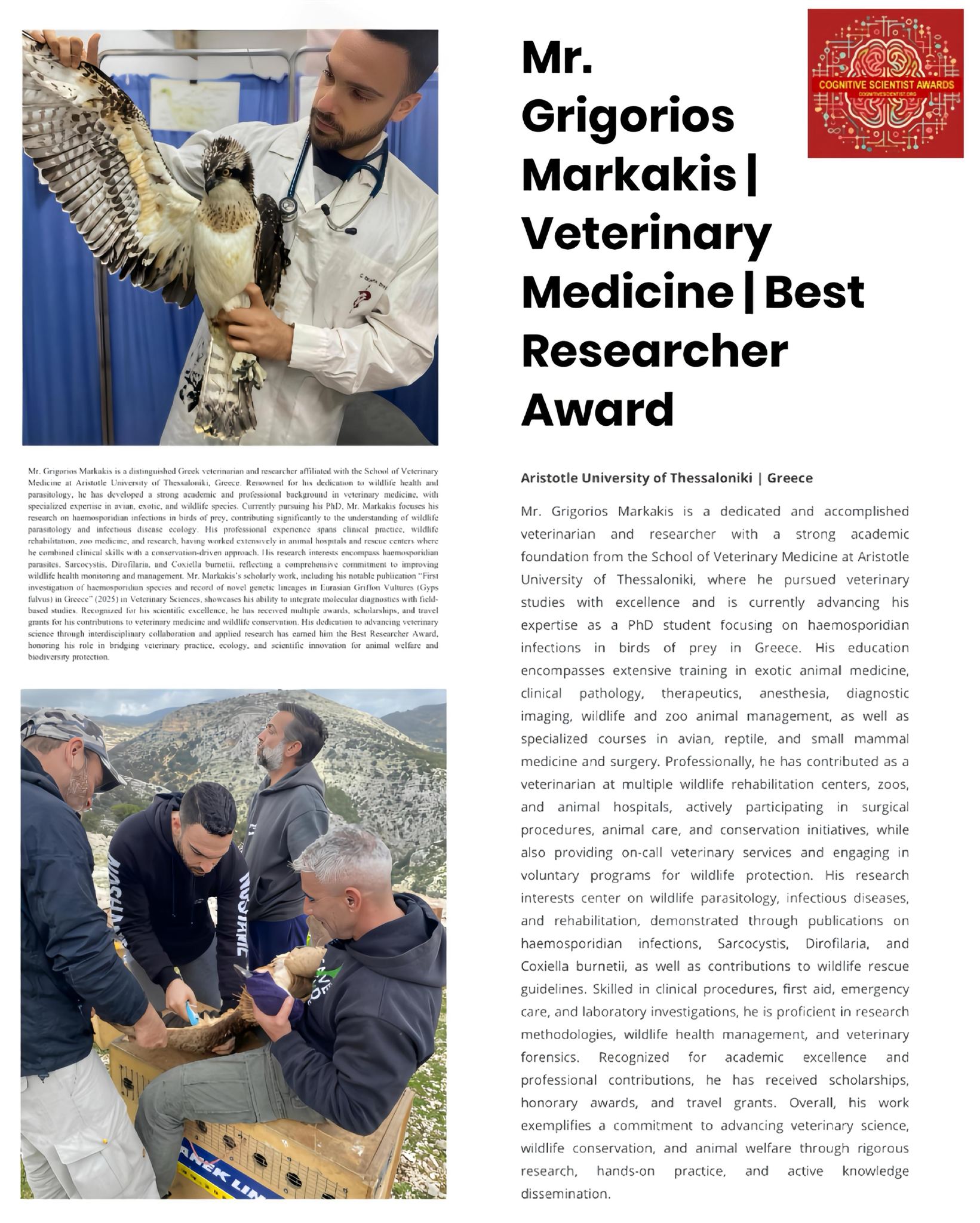 Τον περασμένο Οκτώβριο, ο κ. Μαρκάκης τιμήθηκε επίσης με το «Best Researcher Award» στον κλάδο της Κτηνιατρικής από τα International Cognitive Scientist Awards, σε αναγνώριση της πολυετούς και σημαντικής ερευνητικής του δραστηριότητας στο πλαίσιο της ΑΝΙΜΑ.